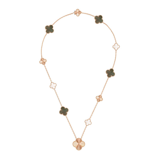 [Noble Aura jewelry]DETACHABLE CLOVER 15(11+4) FLOWER ROSE GOLD NECKLACE SET